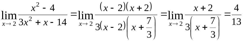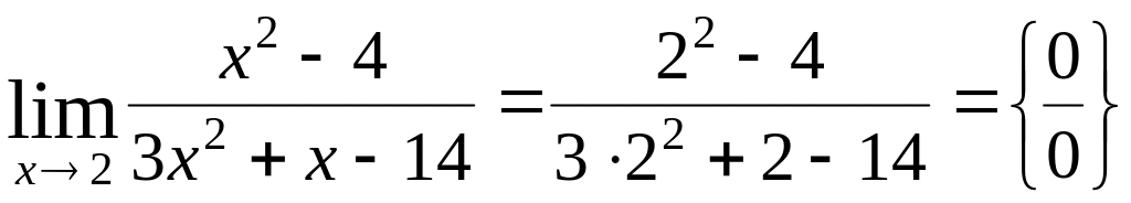 Для того щоб розкрити невизначеність такого виду необхідно чисельник і знаменник дробу розкласти на множники і скоротити множник, який прямує до 0.