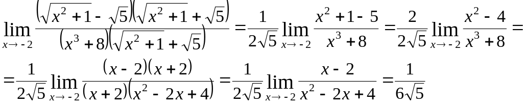 Позбудемось спочатку ірраціональності в численьнику; для цього чисельник і знаменник домножимо на спряжений вираз і скористаємося властивостями функцій, які мають границю