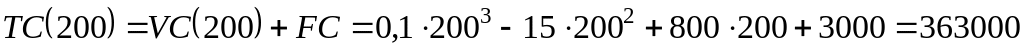 при випуску 200 одиниць продукції; в)