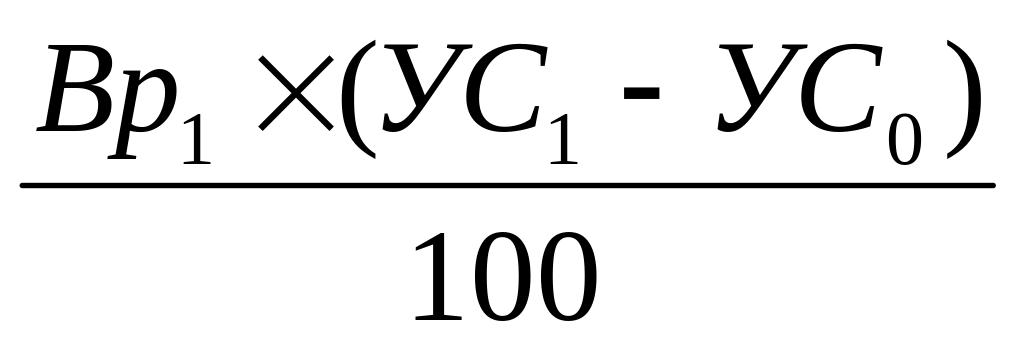 7.Уровень себестоимости проданной продукции к Вр (стр.4 / стр.2) × 100 (УС1 и УС0) |