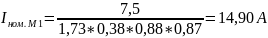 Для составления условия необходимо перемножить коэффициент запаса с номинальной силой тока электродвигателя М1.