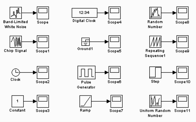 Практически любая модель в SIMULINK не обходится без блоков из трех разделов: Sources, Sinks и Math Operations.