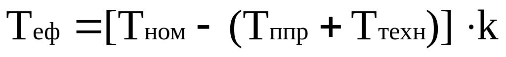 2.2.1 Річний ефективний фонд часу роботи обладнання Теф, г/рік, розраховується за формулою [6]