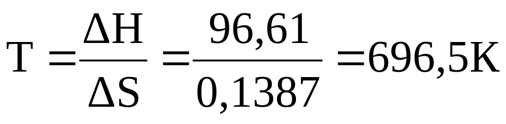 ΔG = ΔH – TΔS = 96,61 – 298·0,1387 = +55,28 кДж.