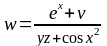 x = cos 52 w = 0,3 x3 - 6 sin(1.8) y=ln x2 + 20,5w