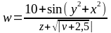 y=1,5 sin(7) x = 0,5 y2 + 4 tg(π/5) w=2x3 +10y