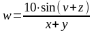 w = 5 sin( π/3.5) x = - w3 +12 z = 0,5 w + 3 x2