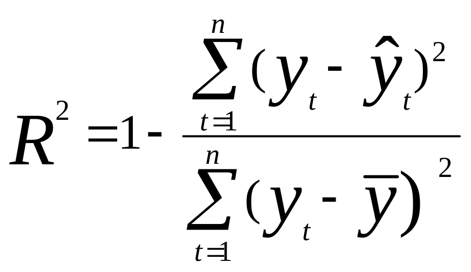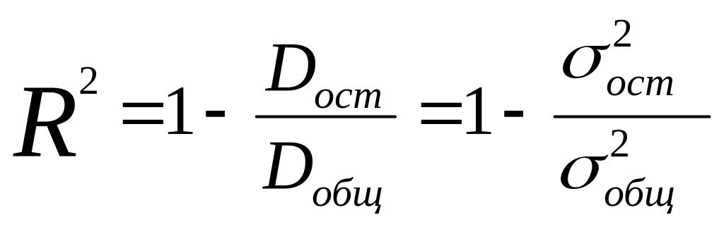 Иногда (при больших значениях объема выборки (n)) используют упрощенную формулу для вычисления коэффициента детерминации R2: