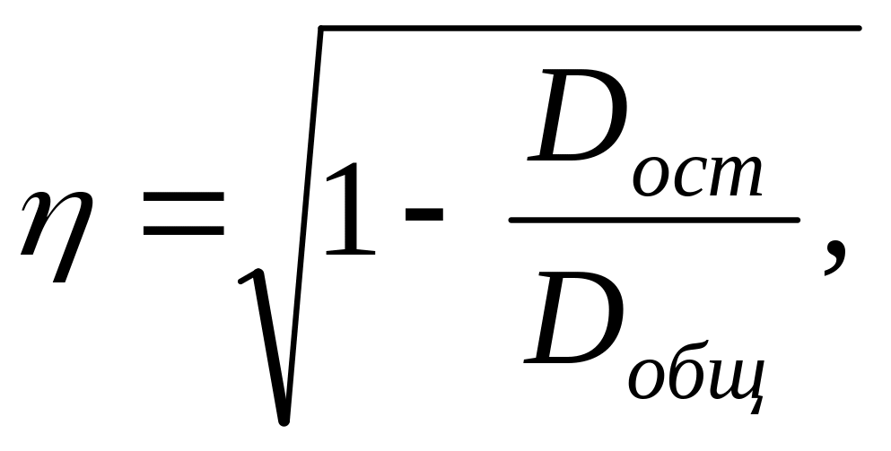 Приведенные выше выражения для вычисления коэффициента детерминации также используют при оценке тесноты взаимосвязи факторов нелинейной регрессии. Применительно к данной области эконометрических исследований для оценки тесноты взаимосвязи факторов нелинейной регрессии используется понятие корреляционного отношения (η):