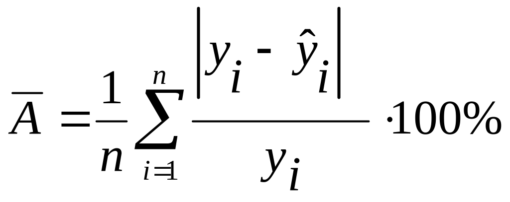 Оценку адекватности регрессионной модели на основе среднего коэффициента аппроксимации используют следующее выражение (среднюю относительную погрешность):