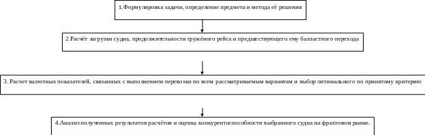 практике задачи, аналогичные сформулированной в настоящей курсовой работе, решаются на минимум расчетной фрахтовой ставки, т.е. в качестве критерия оптимальности принимается экономический показатель – «расчётная фрахтовая ставка». Этот показатель отражает стоимость перевозки одной тонны груза, а его уровень формируется эксплуатационными расходами, определяющими себестоимость перевозок и нормативной величиной прибыли от перевозки.