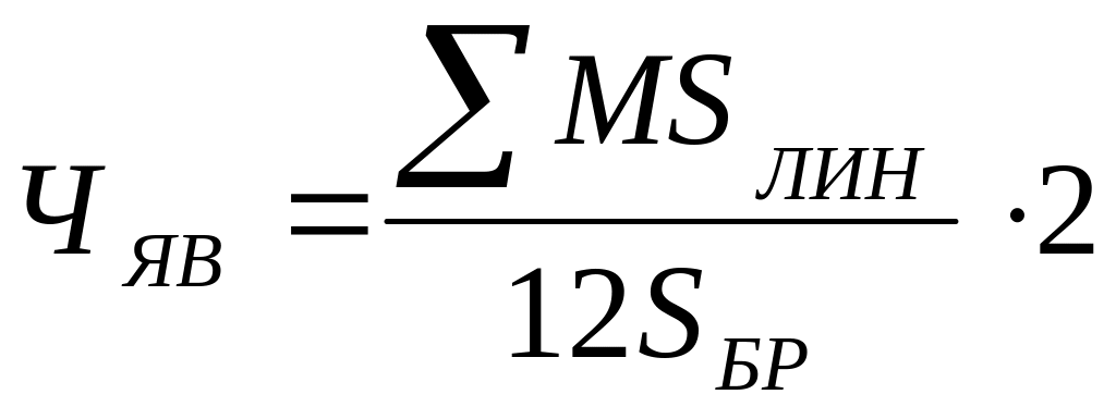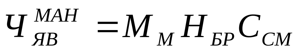 На маневровой работе плановая численность локомотивных бригад определяется исходя из количества локомотивов, работающих на маневрах ММ, нормы обслуживания Нбр и сменности работы Ссм: