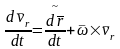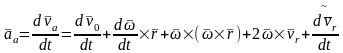 мұндағы радиус-векторынан уақыт бойынша алынған абсолют туындыны есептеуге мына формуланы қолданамыз: