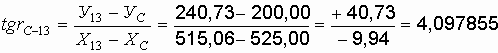 Угол можно получить как разность двух дирекционных углов линий СД и С-13: