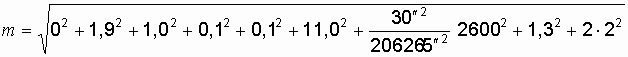 Для способа полярных координат (2.3) принимаем mи = 0 мм, m = 30" (теодолита Т30), mФ= 2 мм (фиксирование с помощью кола с гвоздем).