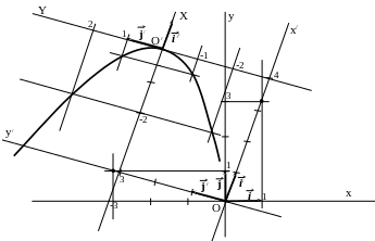 С троим сначала систему координат О i j (Оху) (рис. 25), затем О i / j / (Ox/y/) и, наконец, О/ i / j / (О / ХY). В системе О/ i / j / строим параболу.