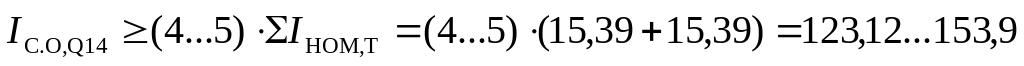 Ток защиты на Q14 выбирается по наиболее тяжелому условию обеспечения несрабатывания на отключение защиты линии W12 при послеаварийных перегрузках.