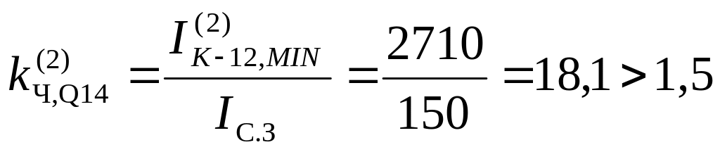 Чувствительность МТЗ на Q14 в основной зоне ( схема «неполная звезда с тремя реле»; коэффициент схемы равен единице)