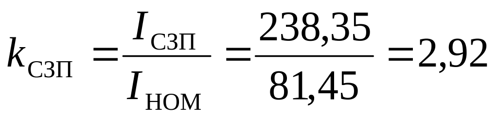 Ток самозапуска определяется как ток трехфазного КЗ за эквивалентным сопротивлением от источника до нагрузки без учета активных сопротивлений кабелей (ввиду их малого значения).