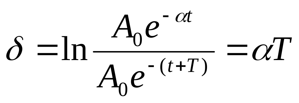 Мерой затухания является величина называемая логарифмическим декрементом затухания δ. Логарифмический декремент затухания есть логарифм отношения двух последовательных амплитуд колебаний отличающихся на период.