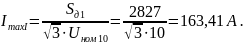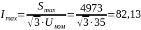 Для BJI 35 кВ определяем максимальный ток из условия работы от одной линии обеих секций подстанции