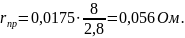 Длина соединительных проводов составляет L = 8 м, марка ПР500-2,5. Материал провода — медь ( = 0,0175 Омм/мм2; сечение q = 2,5 мм2).
