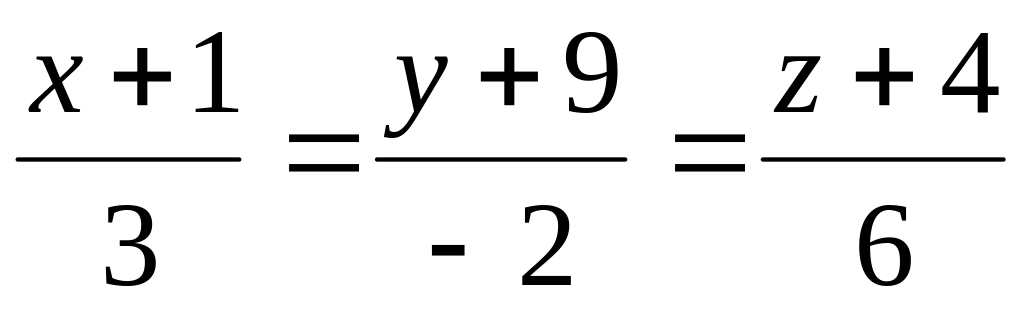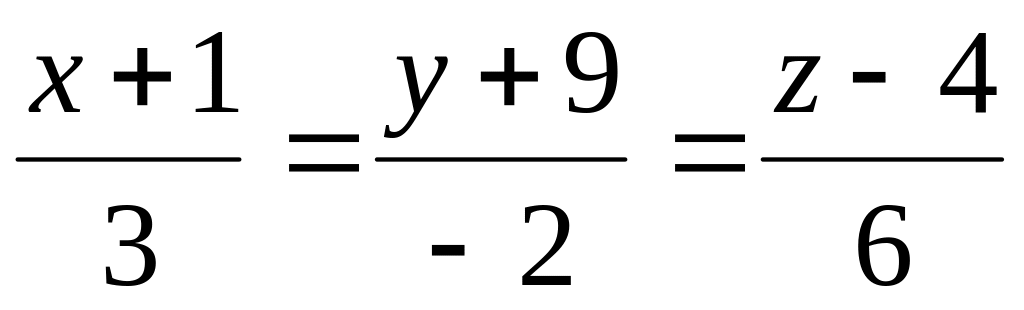 2. Уравнение прямой, проходящей через точку М0(1; 9; -4) параллельно вектору =(3; 2; 6), имеет вид:
