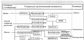 Рисунок 3.1 дает краткий обзор путей обработки из основных углеводородных продуктов в промежуточные и полимерные конечные продукты. К тому же, и другие конечные продукты (например, растворители) изготавливаются из основных нефтехимических продуктов.