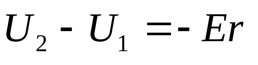 Работа перемещения единичного заряда е на пути r1 будет E r1. Эта же работа может быть выражена через разность потенциалов начала U2. и конца U1. с обратным знаком: