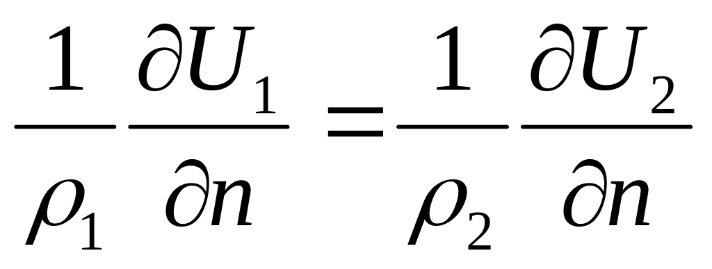 а) равенство потенциалов U1 = U2, устанавливающее непрерывность потенциального поля во всем изучаемом пространстве;