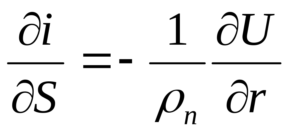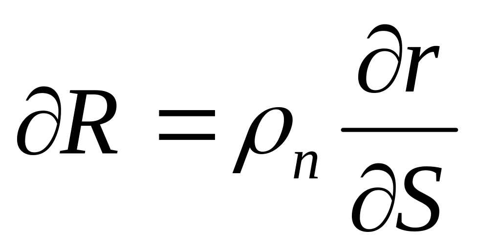 Для пояснения первого закона выделим элементарный объем (рис. 8) среды с удельным сопротивлением ρn, длиной ∂r и сечением ∂S; через сечение ∂S и перпендикулярно ему проходит ток ∂i, образуя на концах падение потенциала ∂U.