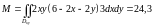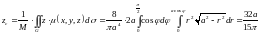 Далее, по формулам (12.6) вычисляем координаты центра масс. С учётом симметрии поверхности и функции плотности, без вычисления определяем, что ордината центра масс равна нулю. Для двух других координат составляем интегралы и вычисляем их.