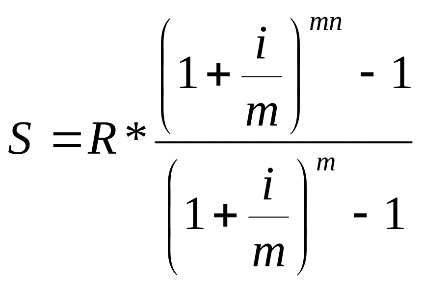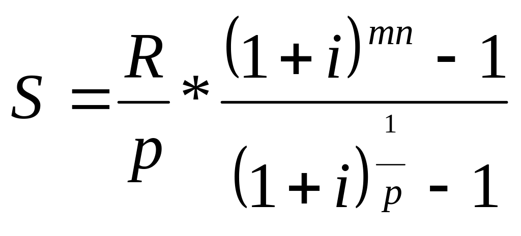 В практической деятельности зарубежных и российских банков часто число платежей в году по основной сумме долга равно числу начислений процентов в течение года, т.е. т = р.