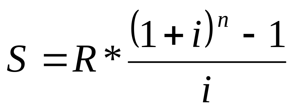 1) характеристика будущей стоимости (наращенной суммы) всех выплат с начисленными на них процентами. Наращенная сумма определяется, например, при оценке накопленной задолженности, при определении суммы на депозите по окончании срока ренты и др.;