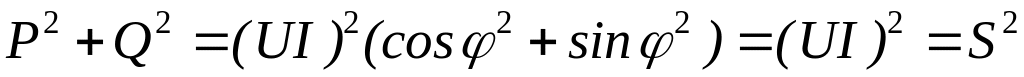Соотношение между полной, активной и реактивной мощностями можно получить, воспользовавшись формулами