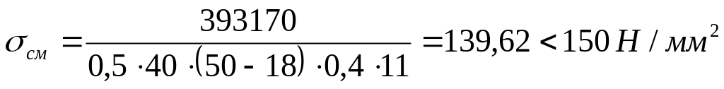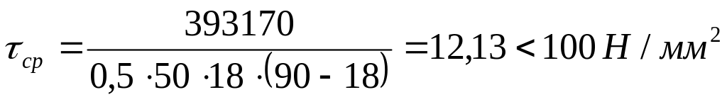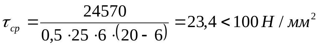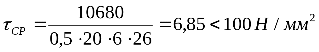Проверяем шпонку по условиям смятия и среза по формулам (1.4.1) и (1.4.2).