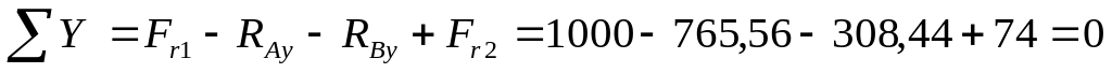 4.Реакции в вертикальной плоскости и от радиального усилия Fr1, Fr2 и осевого усилия Fа1 .