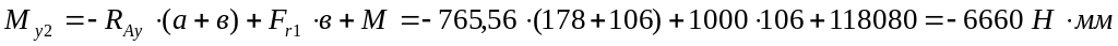 3.Находим изгибающие моменты от сил Ft1 и Ft2.