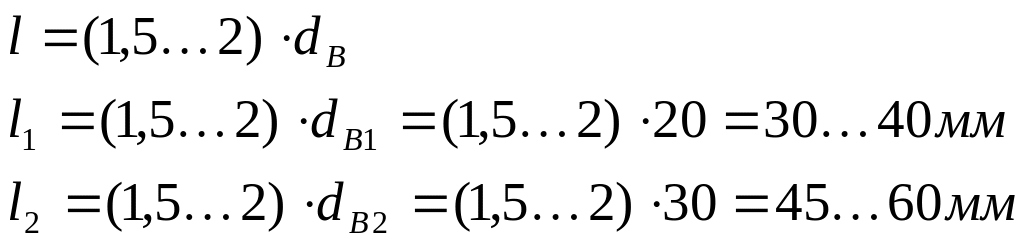 Длины выходных концов быстроходного l1 и тихоходного l2 валов определяются из соотношения,[3, стр.309];