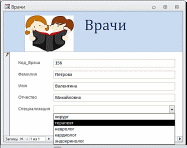 С помощью созданной формы «Врачи» можно добавлять, изменять и удалять записи.