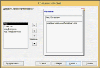 В окне группировки выбрать группировку по Фамилии (рисунок 28).