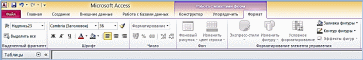 Обратите внимание на контекстные вкладки ленты «Упорядочить» (рисунок 19) и «Формат» (рисунок 20). Эти вкладки предназначены для работы с формами и позволяют изменять все элементы форм, от макета и надписей до полей.