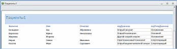 Запустить мастер отчетов и выбрать из таблицы «Пациенты» поля «Фамилия», «Имя», «Отчество»; из таблицы «ИБ-Диагнозы» поля «кодДиагноза» и «кодТипаДиагноза».