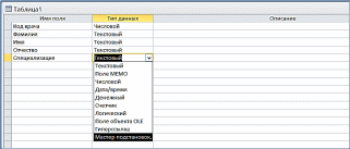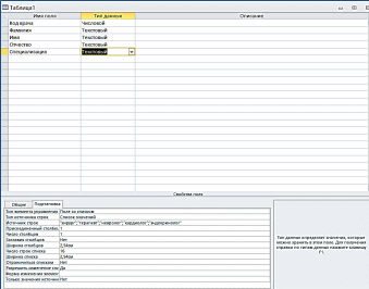 Обратите внимание: тип данных в поле СПЕЦИАЛИЗАЦИЯ поменялся на «Текстовый», но, если в свойствах поля вы выберите вкладку «Подстановка», то вы увидите ваш созданный список (рисунок 12).