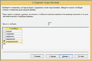 Далее создаем 1 столбец со списком специализаций так, как показано на рисунке 10:
