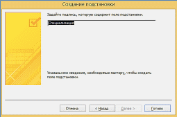 Задаем имя столбца в соответствии с названием поля – СПЕЦИАЛИЗАЦИЯ (рисунок 11) и нажимаем кнопку «Готово».