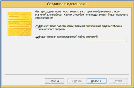 В режиме СОЗДАНИЯ ПОДСТАНОВОК выбирите пункт БУДЕТ ВВЕДЕН ФИКСИРОВАННЫЙ НАБОР ЗНАЧЕНИЙ (рисунок 9).