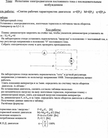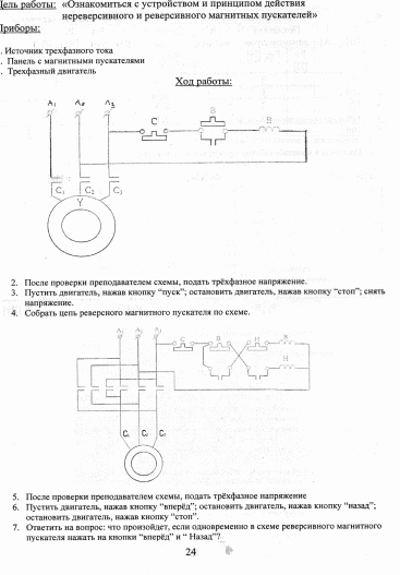 Оборудование и приборы: асинхронный двигатель, ламповый реостат, вольтметр 250-300 (В), амперметр 5(А), комплект проводов.