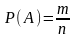 где Р(А) – вероятность появления события А; m - число случаев, благоприятствующих событию А; n - общее число случаев.