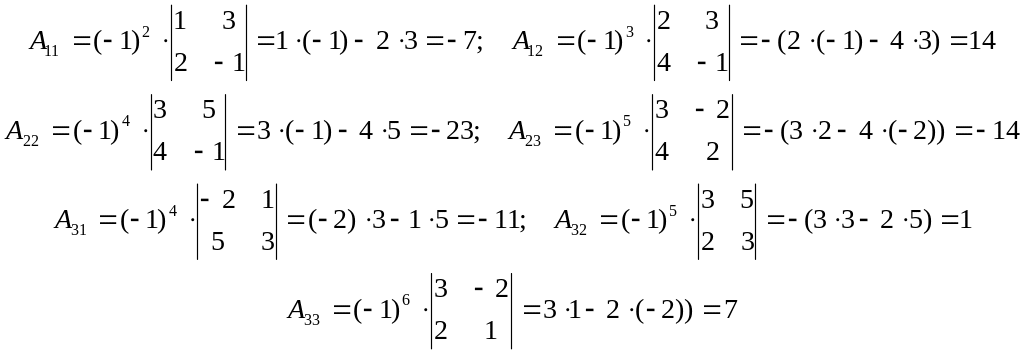 Находим матрицу, состоящую из алгебраических дополнений элементов исходной матрицы: